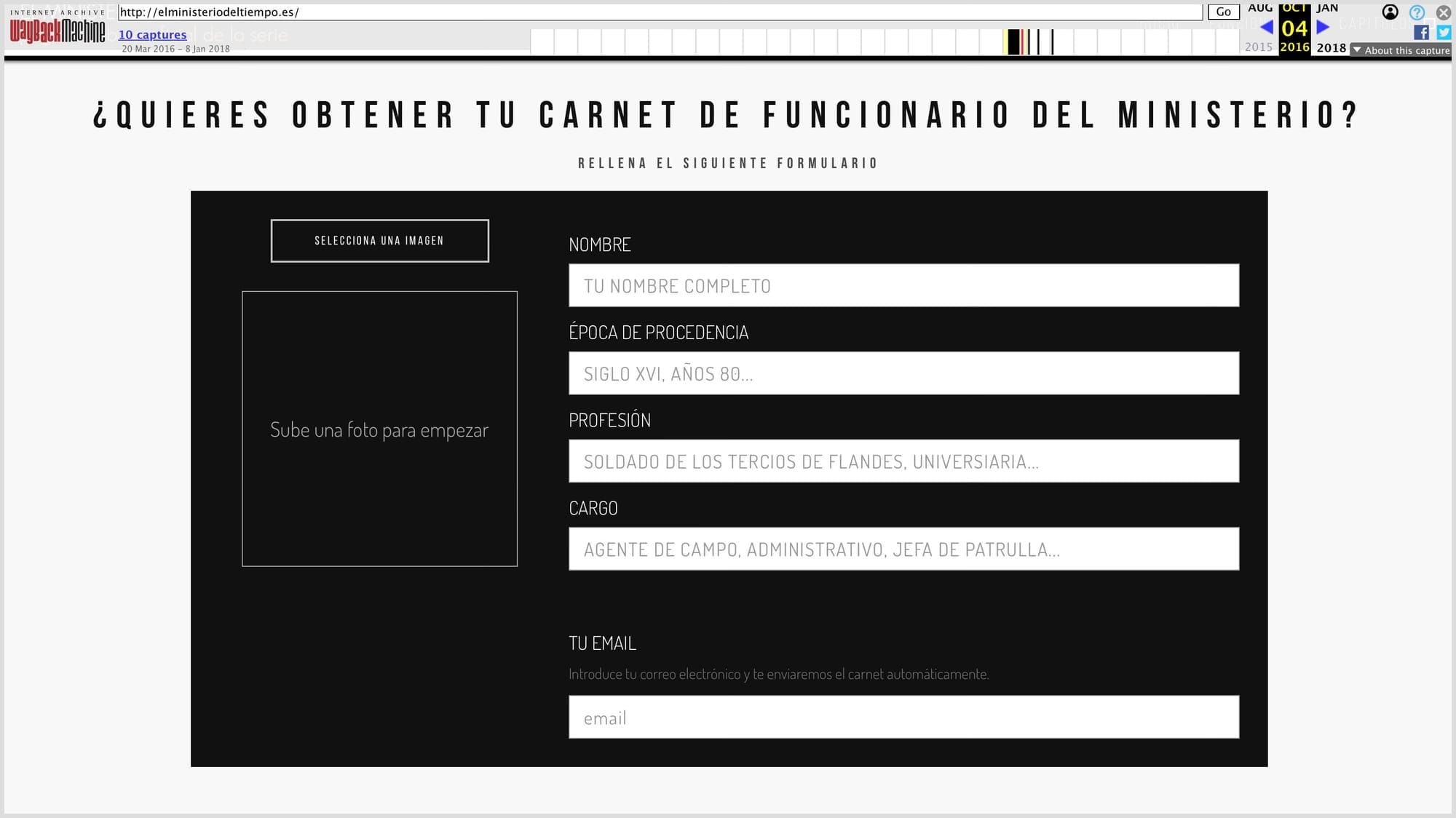 La gente podía subir su foto, elegir su "cargo en el Ministerio" y su "época de procedencia".