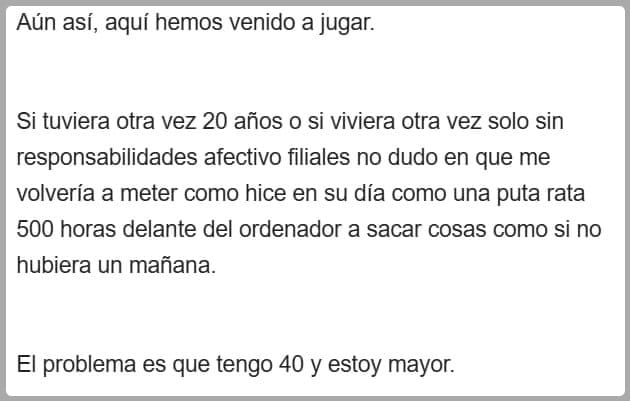 Con dos hijos, esa etapa se acabó para mí. Ahora, cada hora cuenta, y hay que elegir muy bien dónde la vas a invertir.