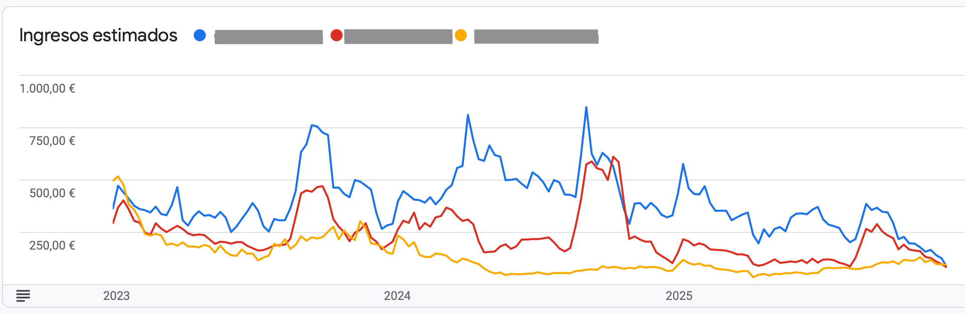 Esta gráfica es de mi web con mejores cifras, con la que he facturado 62.000€ en Google Adsense durante los últimos 3 años 🤑